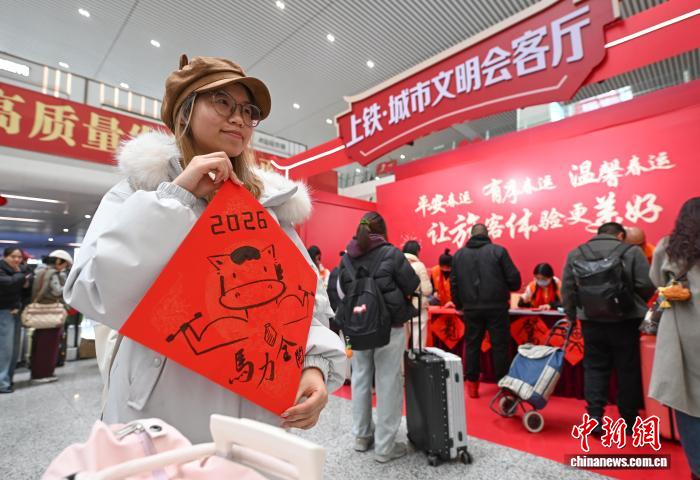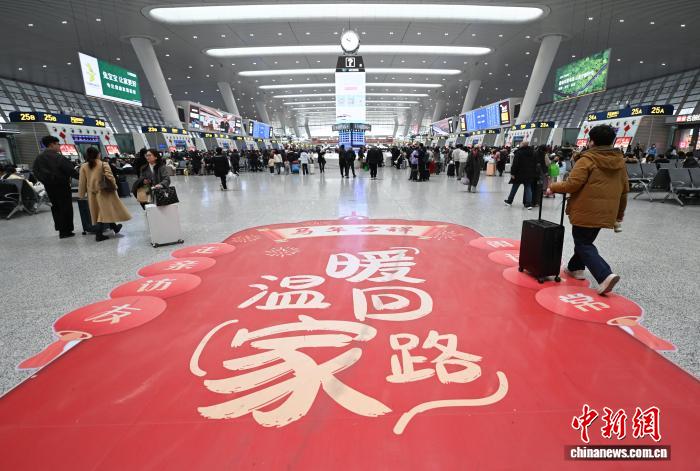 杭州东站候车厅弛揭着巨大的“和暖归家道”海报。中新社记者 王刚刚 摄