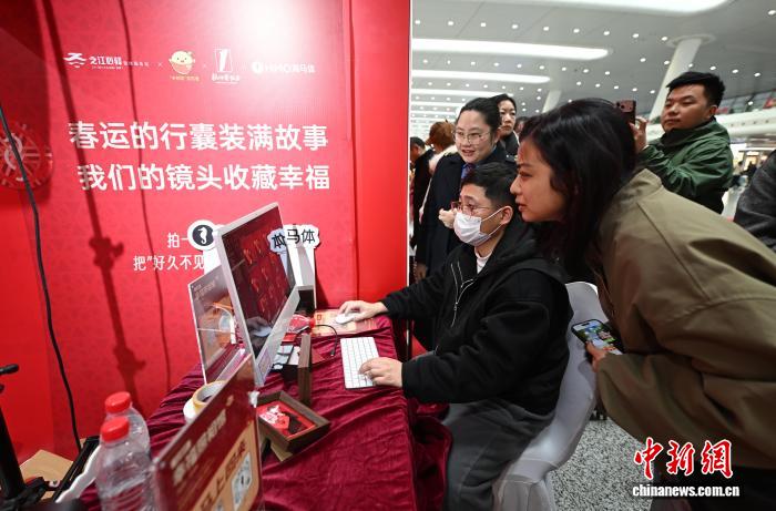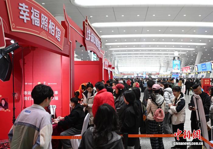 杭州东站的幸运拍照馆吸收搭客。中新社记者 王刚刚 摄