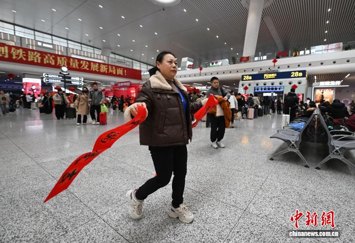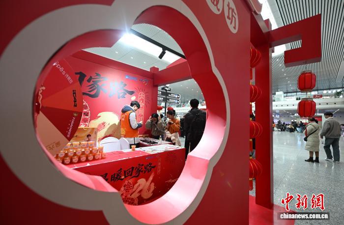 杭州东站候车厅弛揭着巨大的“和暖归家道”海报。中新社记者 王刚刚 摄
